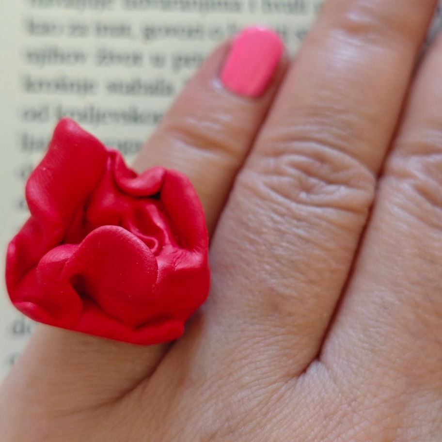 Red polymer clay makes this super sensual, sexy ring.